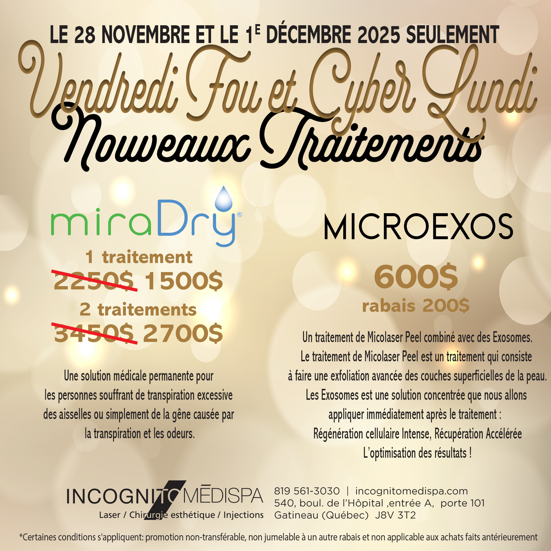 Incognito Médispa est fier de récompenser sa clientèle avec différentes promotions tout au long de l’année.
